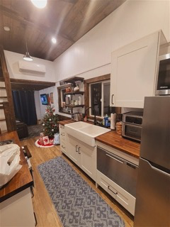 White double sink Butcher Block Countertop Dishwasher drawer